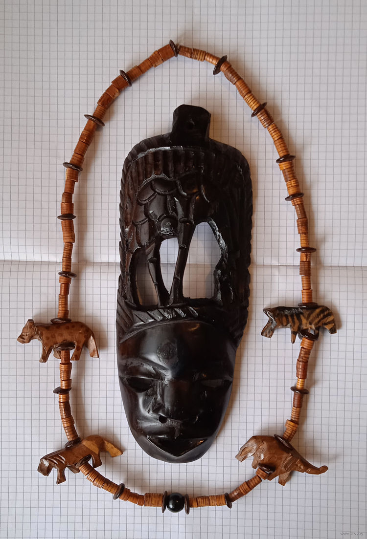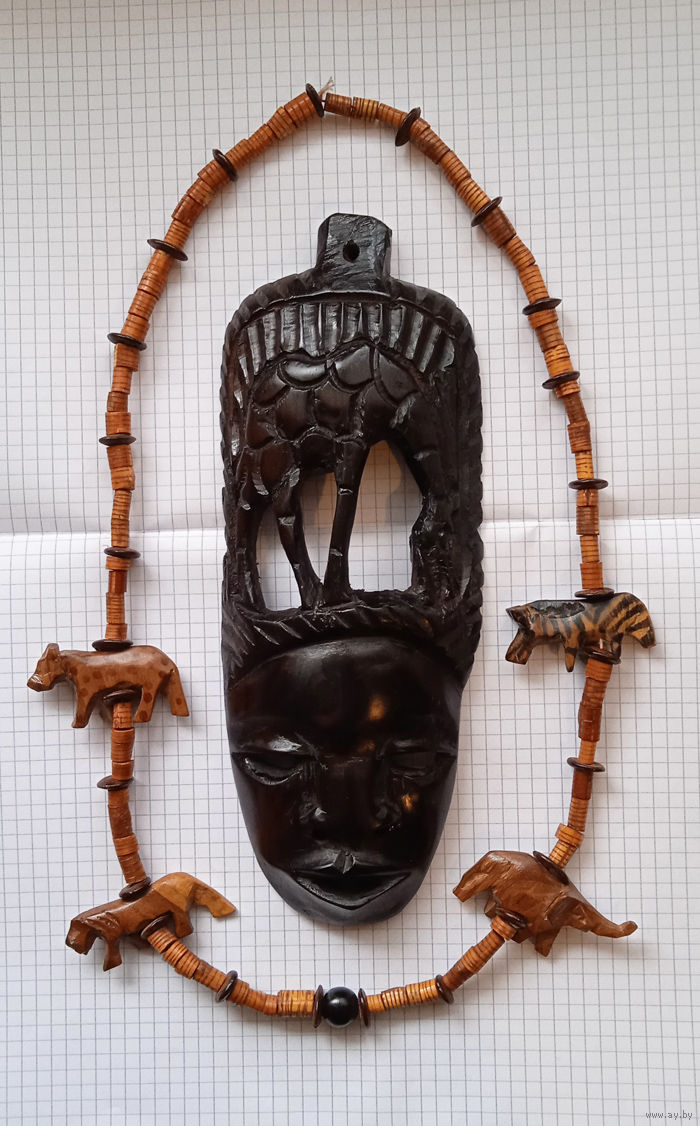 Африканская маска из эбенового дерева, привезена в 80е годы , деревянные бусы ручной работы бонусом.