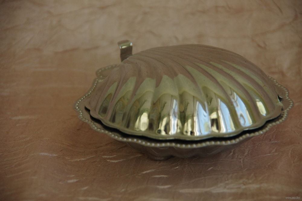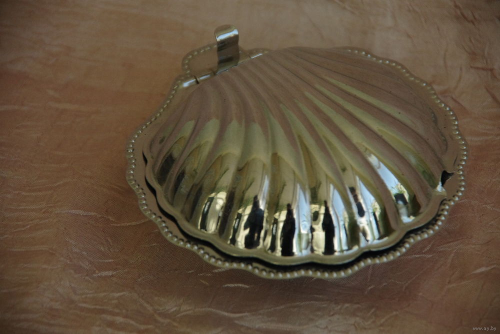 Масленка " Раковина " со стеклянным вкладышам ( 12 см х 13 см , высота 5 см )