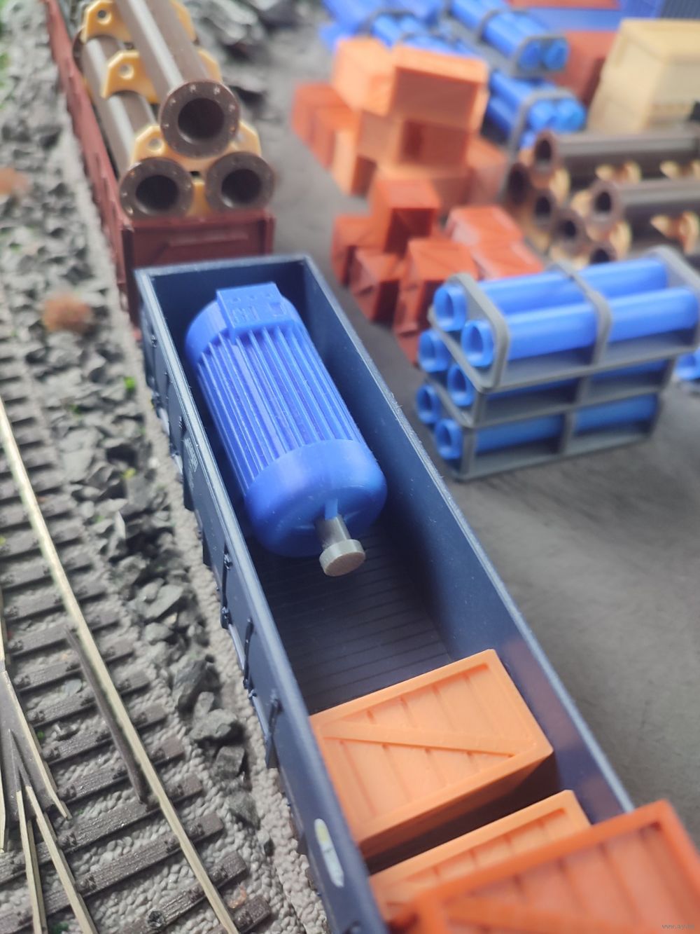 Масштаб 1/87 грузы для жд вагонов (электромотор) материал пластик 3D печать.