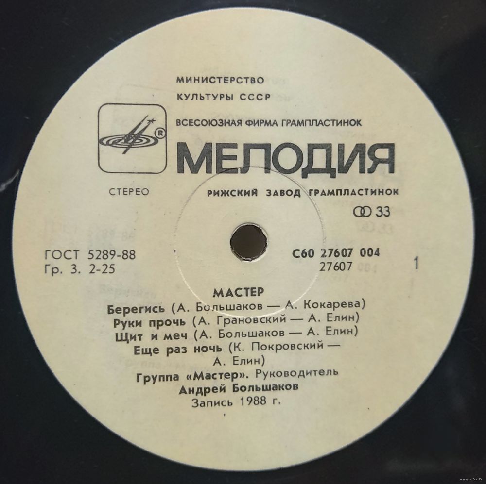 Всесюзная студия грамзаписи. Запись 1988 г.
