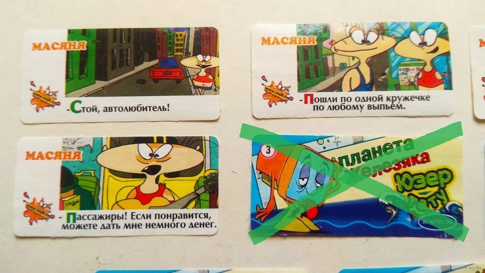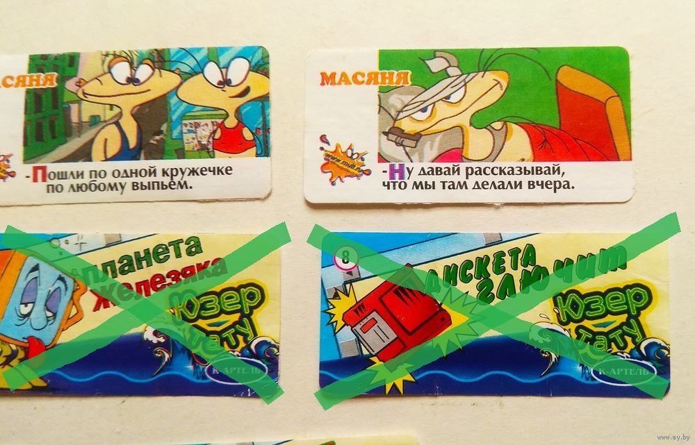 Наклейки смыты из альбома. На большей части у них нет клеевого слоя. На некоторых есть остатки бумаги, на которую их приклеивали.