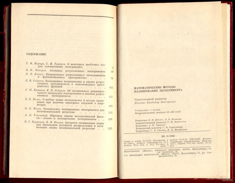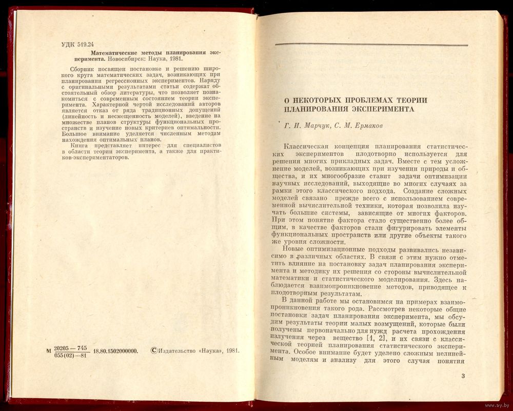 - Марчук Г. И., Ермаков С. М. О некоторых проблемах теории планирования эксперимента.