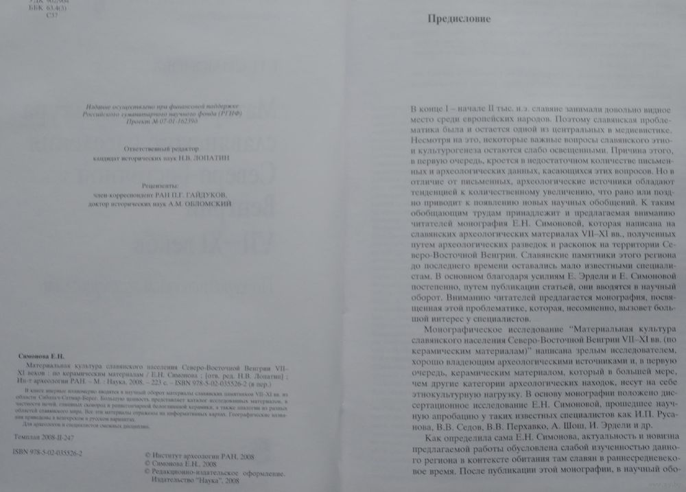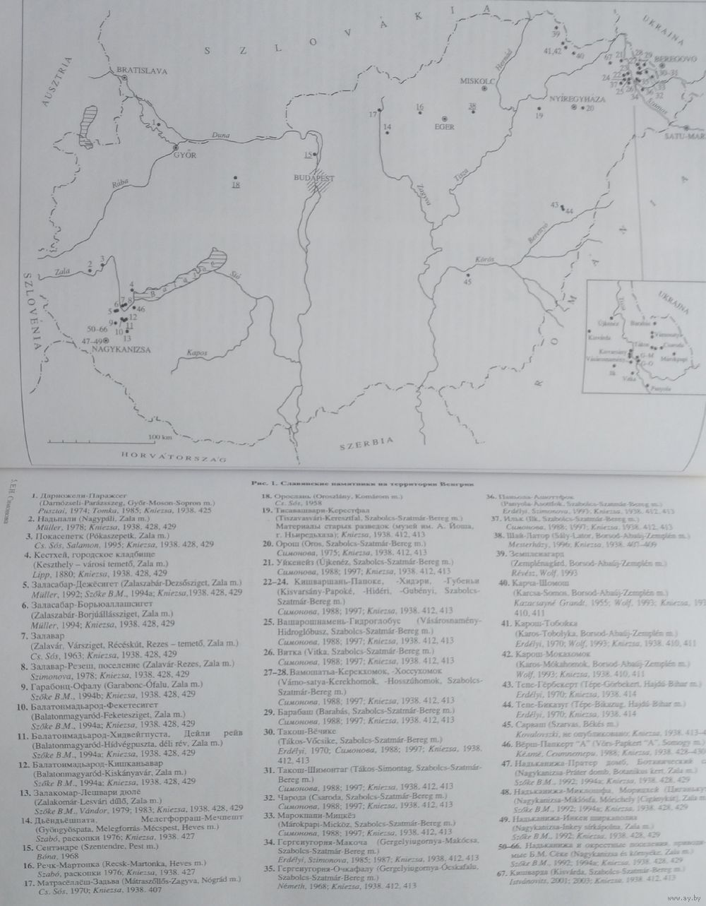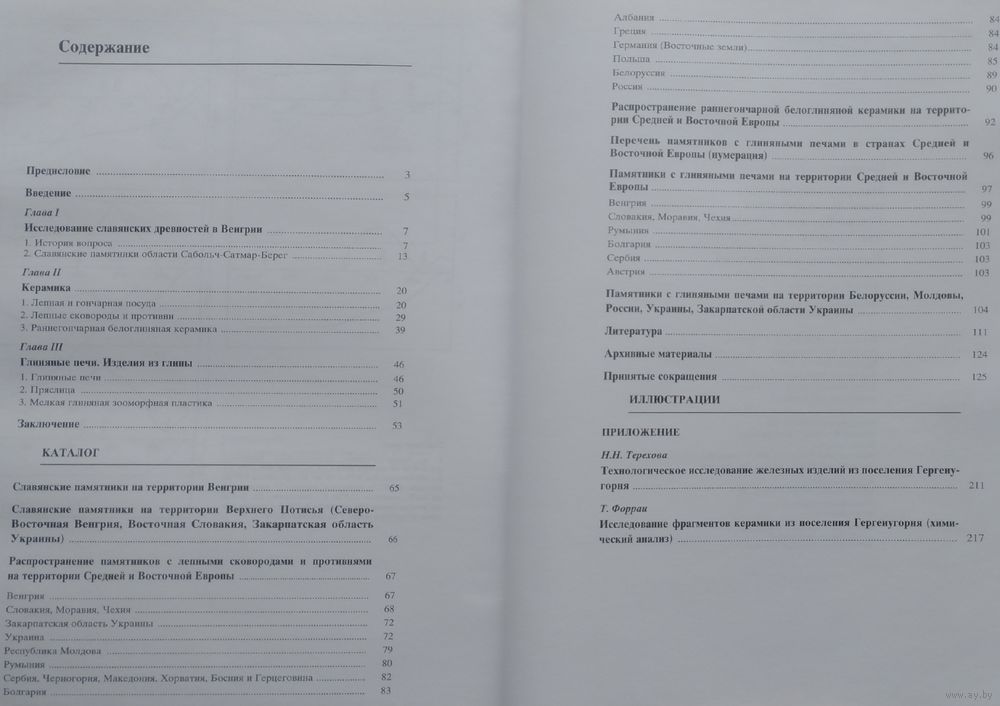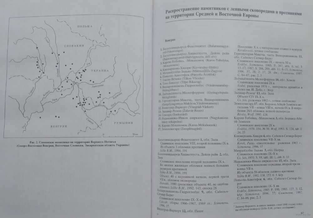 Большой энциклопедический формат. Тираж 800 экз. 228 стр. В книге впервые планомерно вводятся в научный оборот материалы славянских памятников VII - XI вв. из области Сабольч-Сатмар-Берег. Большую ценность представляет каталог исследованных материалов, в частности печей, глиняных сковород и раннегончарной белоглиняной керамики, а также аналогии из разных областей славянского мира. Все эти материалы отражены на информативных картах. Географические названия приведены в венгерском и русском вариантах.