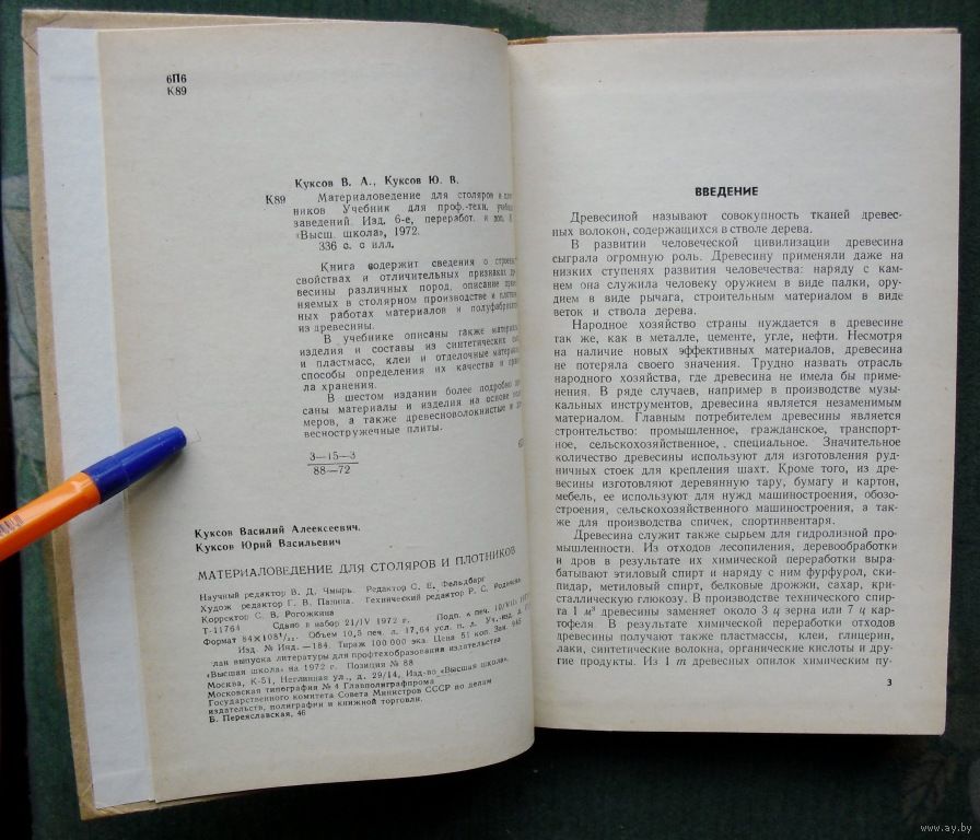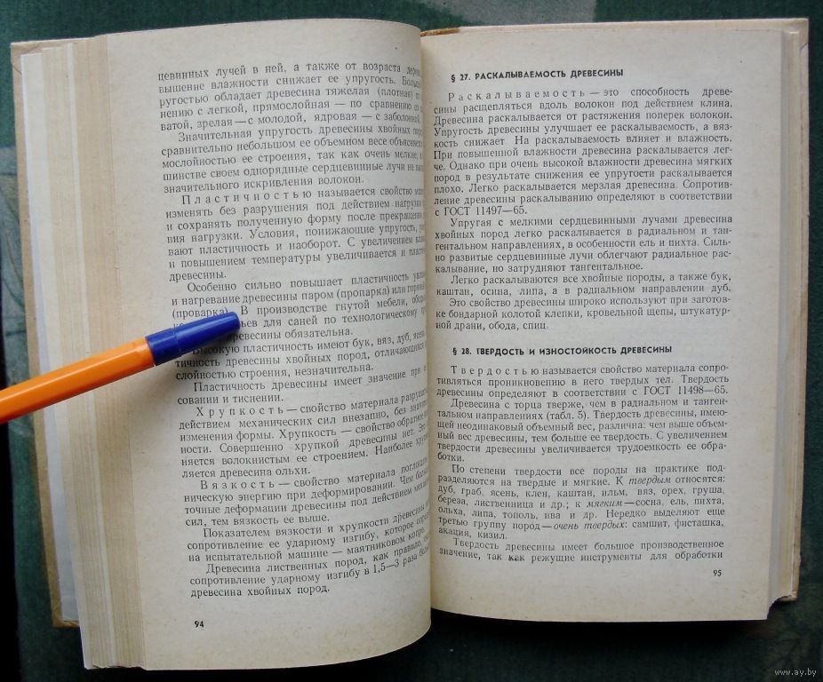 Книга содержит сведения о строении, свойствах и отличительных особенностях древесины различных пород, описание применяемых в столярном производстве и плотничных работах материалов и полуфабрикатов, в ней указаны также способы определения их качества и правила хранения.