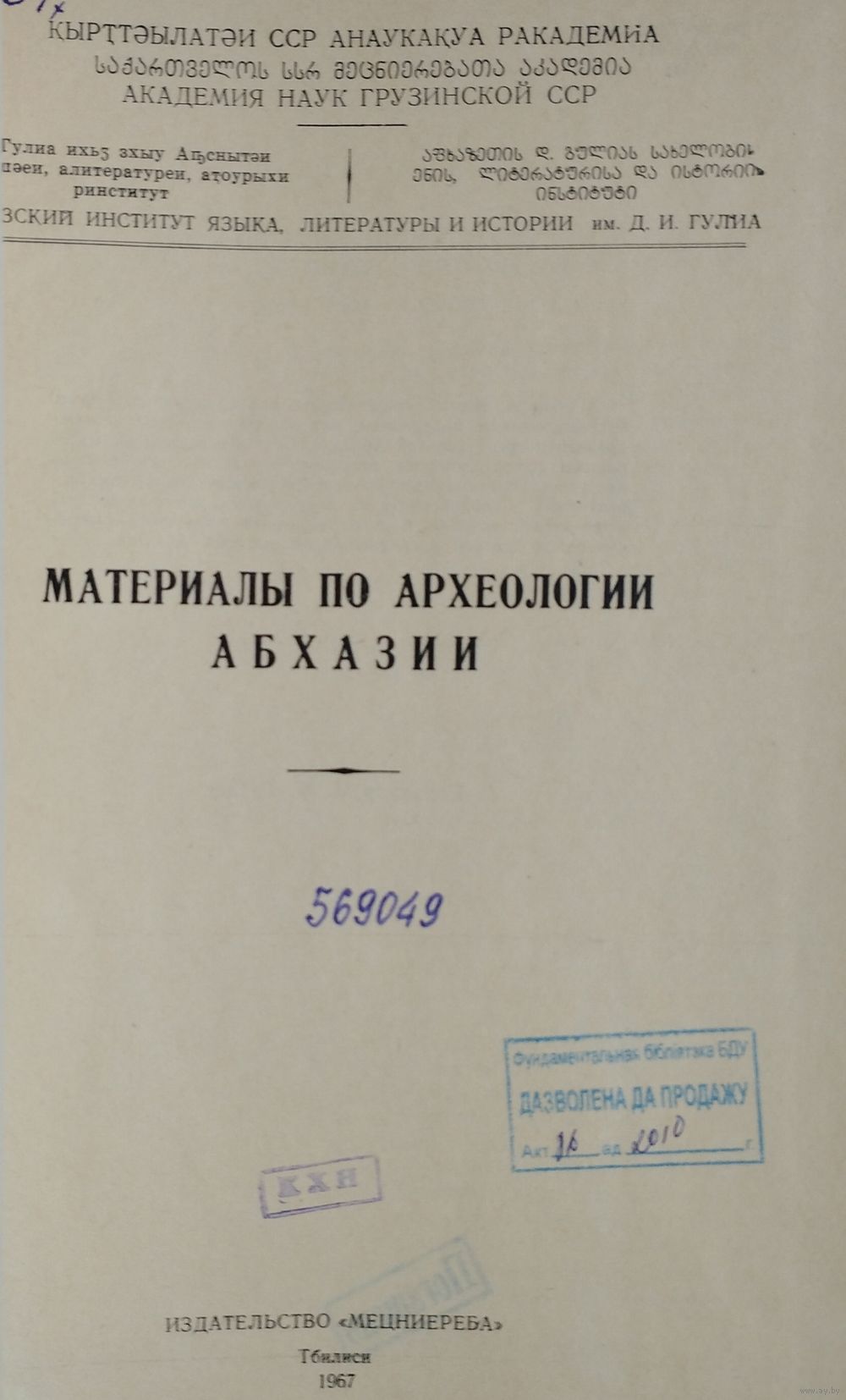 Большой энциклопедический формат. Тираж 1000 экз. 138 стр. В сборник вошли исследования, освещающие, по новым археологическим материалам, ряд важных вопросов истории древней и средневековой Абхазии. Есть штампы.