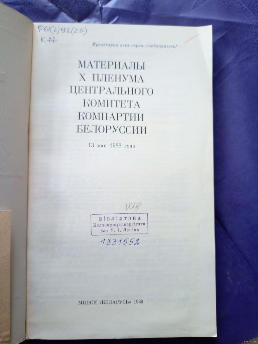 Материалы X пленума центрального комитета компартии Белоруссии\1