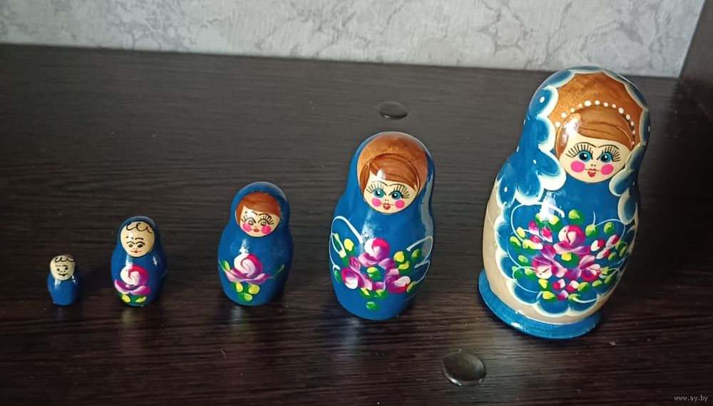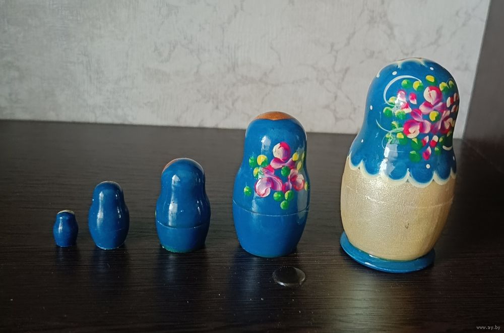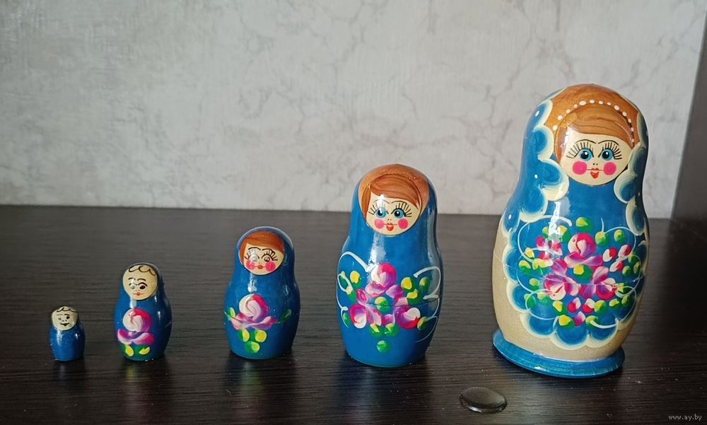 Размеры матрешек 10, 7, 5, 3, 2 см.