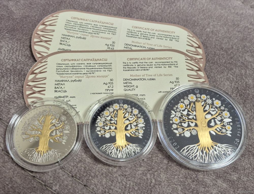 Комплект из трех монет, идеальное состояние, сертификаты.
