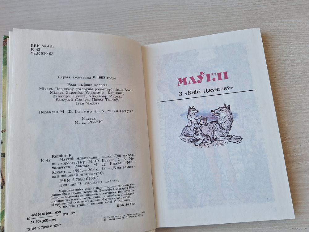 Маўглі - Кіплінг - Бібліятэка замежнай дзіцячай літаратуры - апавяданні і казкі на беларускай мове 1994 - Рыкі-цікі-таві, Казка пра старога кенгуру, Матылёк, які тупнуў нагою, Кот, які гуляў сам сабою і інш