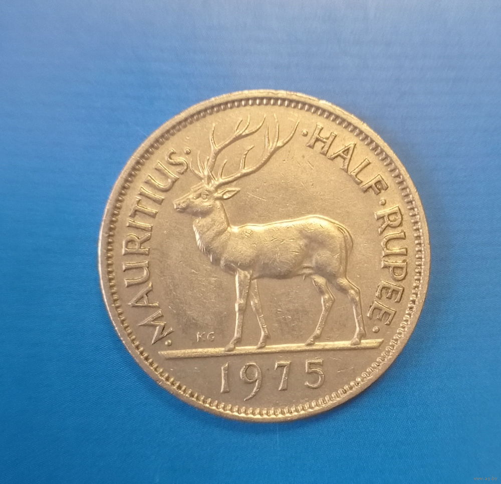 Маврикий 1/2 рупии 1975 год колония Британии королева Елизавета II олень