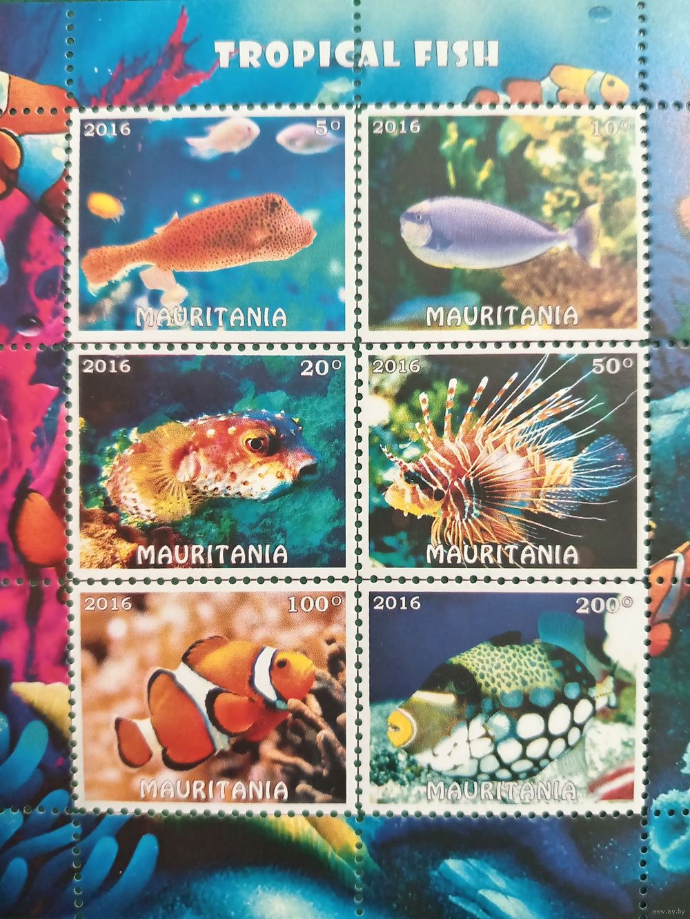 Мавритания 2016. Тропические рыбы. Малый лист