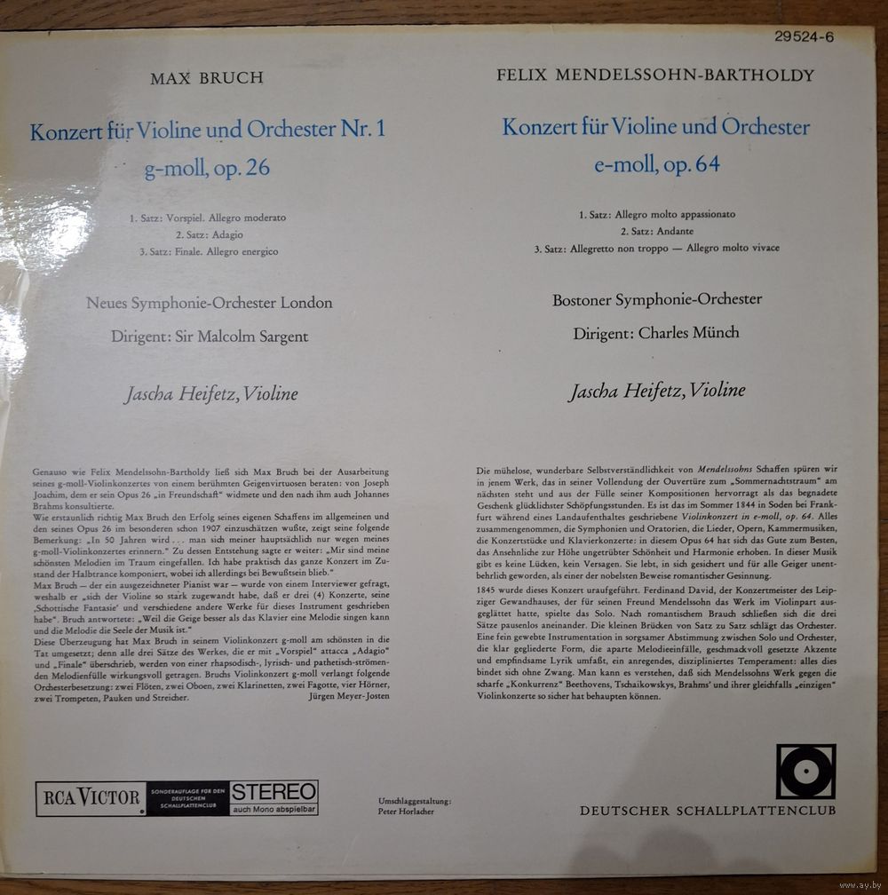 Max Bruch, Felix Mendelssohn Bartholdy, Jascha Heifetz – Violinkonzert Nr.1 G-Moll, Violinkonzert E-Moll