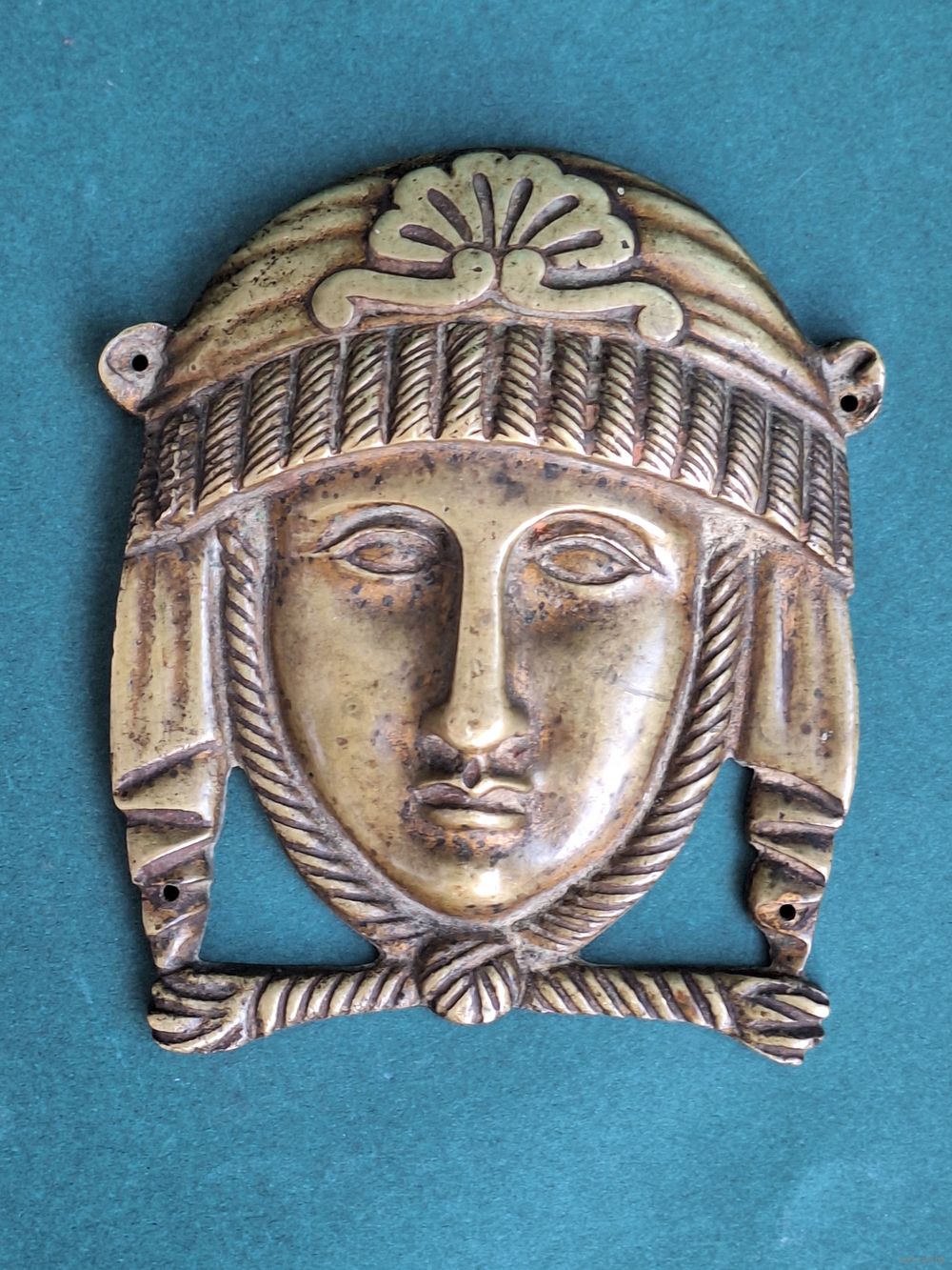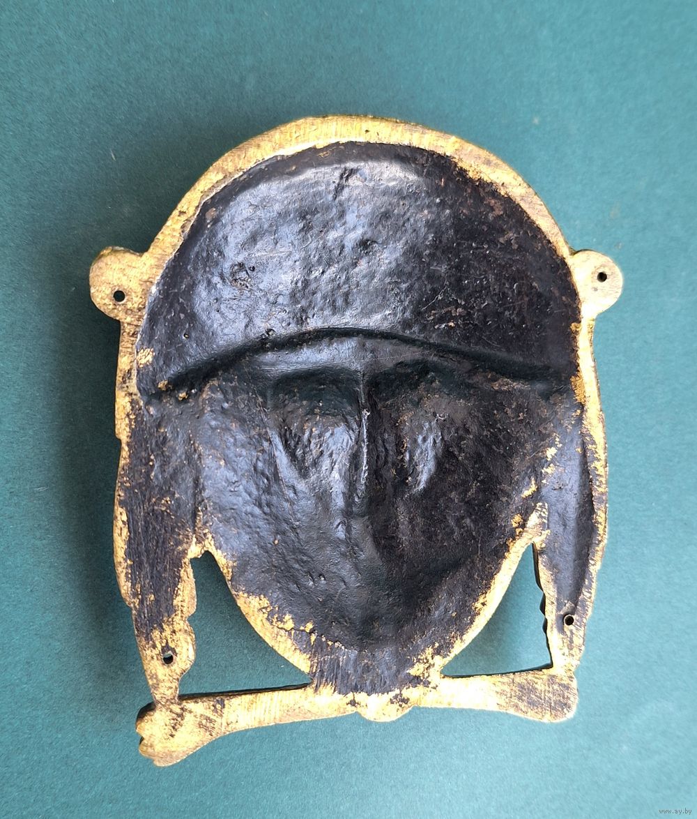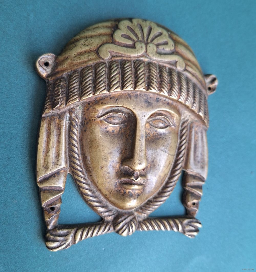 Большая мебельная накладка "Маскарон", бронза, 8х10 см. 19 век.