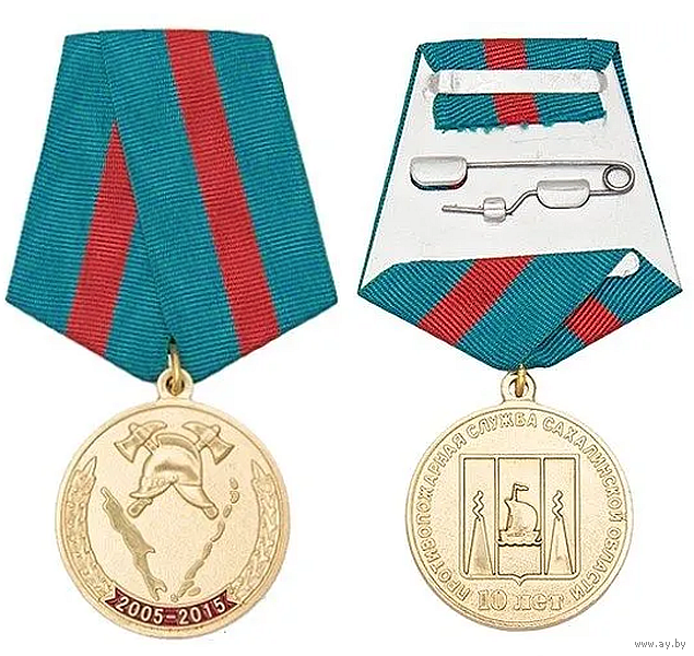 Медаль 10 лет противопожарной службе Сахалинской области