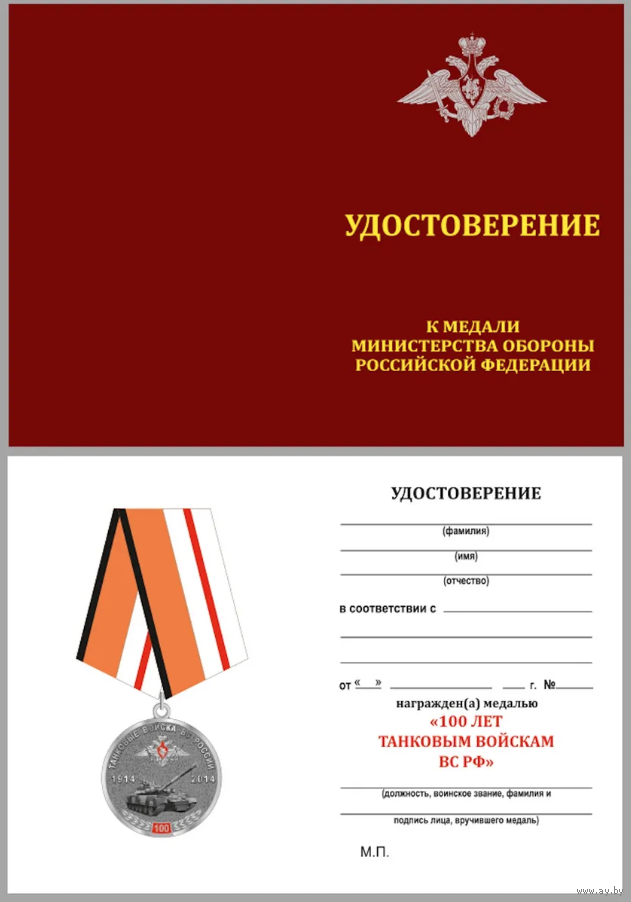 Медаль 100 лет Танковым войскам