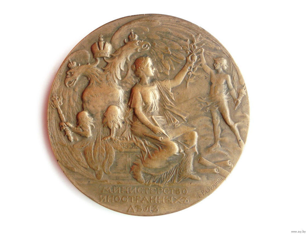 | Медаль в память 100-летия Министерства иностранных дел. Медальер Ф. Разумный. Бронза. Диаметр 68 мм | |