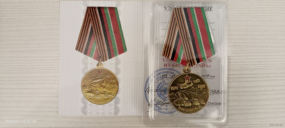 Медаль "30 лет вывода советских войск из Афганистана" с удостоверением, есть возможность вписаться Ф. И. О.