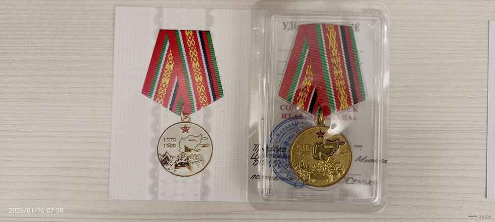 Медаль "35 лет вывода советских войск из Афганистана" с удостоверением, есть возможность вписаться Ф. И. О.