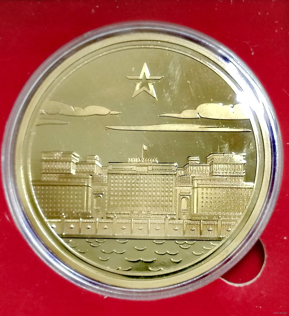 Сувенирная медаль в футляре к 100-летию образования вооруженных сил России . футляр выполнен из пластмассы имитации дерева , закрывается подмагничиванием размеры 10х10 см высота 3 см внутри отделана тканью , там где петли маленькие трещины не критические , верхнюю крышку держит не от ломаная , монета в капсуле , ширина 6 см толщина 3см вес 70 грамм .