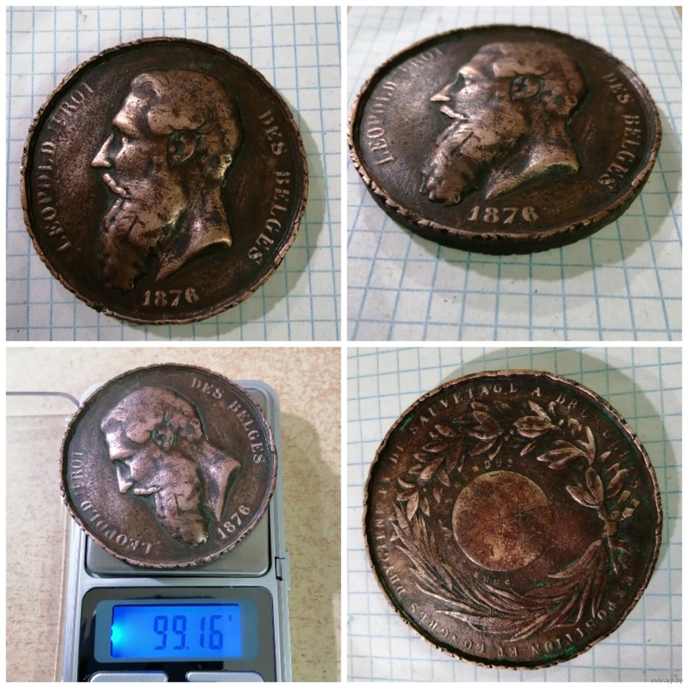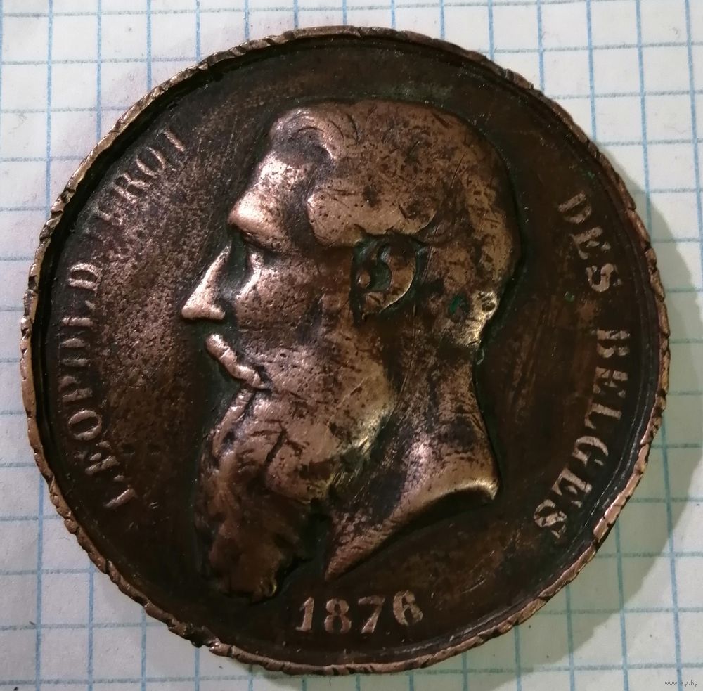 Медаль большая "1876г, Леопольд ll, Бельгия ". Бронза.