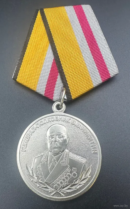 Ведомственная медаль Министерства обороны Российской Федерации. Никитин Василий Васильевич (12 ноября 1914 года, Петроград — 3 августа 1994 года, Москва) — советский военный деятель. Генерал-полковник-инженер (18.11.1971), генерал-полковник (26.04.1984). С деятельностью В. В. Никитина на этой должности связано бурное развитие службы горючего в целях непрерывного обеспечения горючим стремительно растущего парка боевой и вспомогательной техники войск. Большой его заслугой стало создание и развитие трубопроводных войск. Над созданием самой современной техникой для обеспечения войск горючим, прокладки и эксплуатации трубопроводов работал 25-й НИИ Минобороны СССР. Для решения задач обеспечения войск Никитин предложил идею транспортировки горючего посредством полевых магистральных трубопроводов (ПМТ). Разработанные под его руководством ПМТ успешно прошли испытания в ходе крупномасштабных учений, а затем — и в работе.