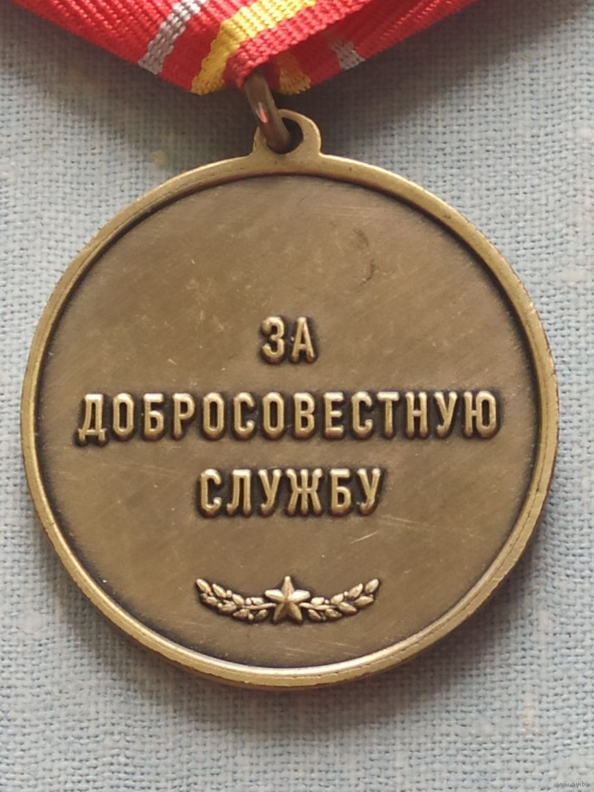 На обороте расположена надпись «ЗА ДОБРОСОВЕСТНУЮ СЛУЖБУ».