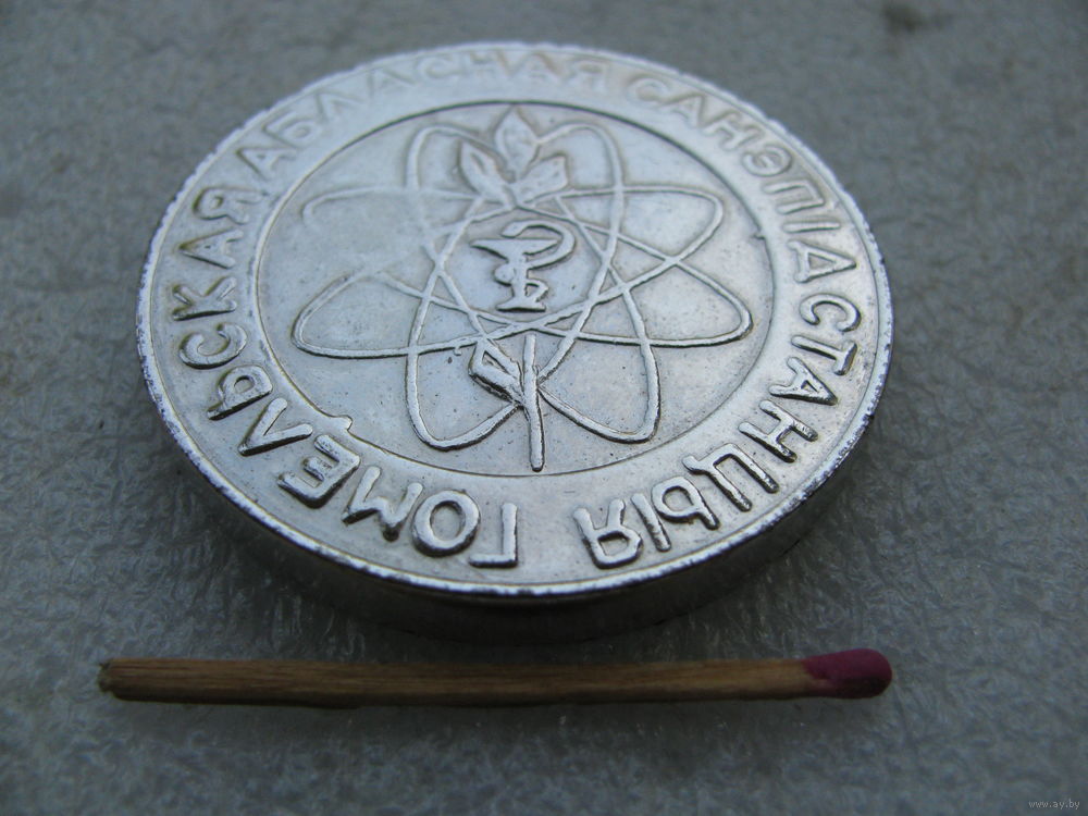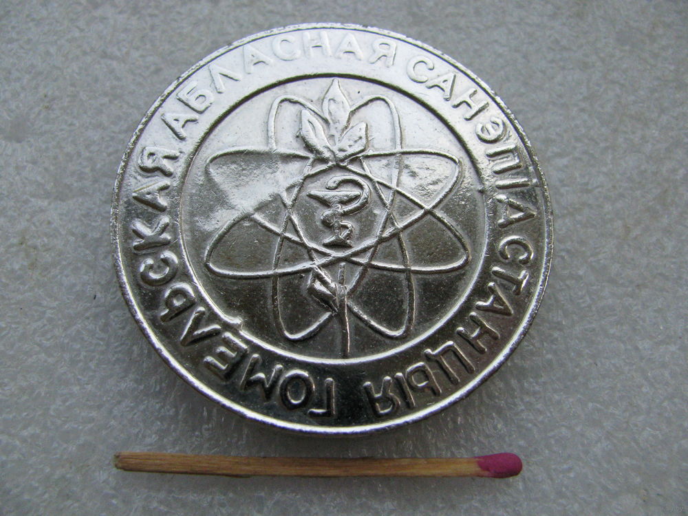 Медаль настольная. Гомельская областная Санэпидстанция РБ. тяжёлая, диаметр 50 мм, толщина 6 мм
