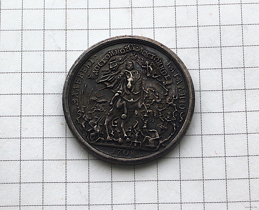 МЕДАЛЬ ПЕТР I БИТВА ПРИ ЛЕСНОЙ.1708г.Новодел.Серебро.Коллекция