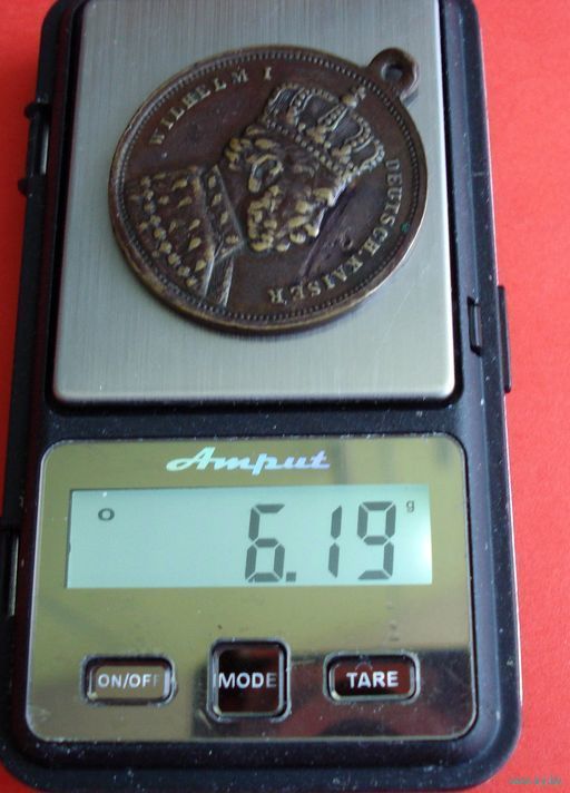 На фотографии изображена немецкая памятная бронзовая медаль, посвященная первому императору объединенной Германии — Вильгельму I.Описание медали: