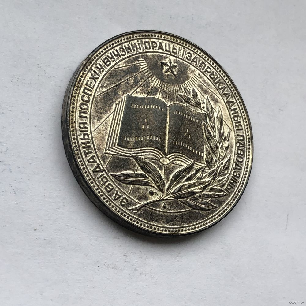 Медаль школьная БССР , обр.1960 г , 40 мм , серебрение. Состояние на фото. Не мытая из коробочки.