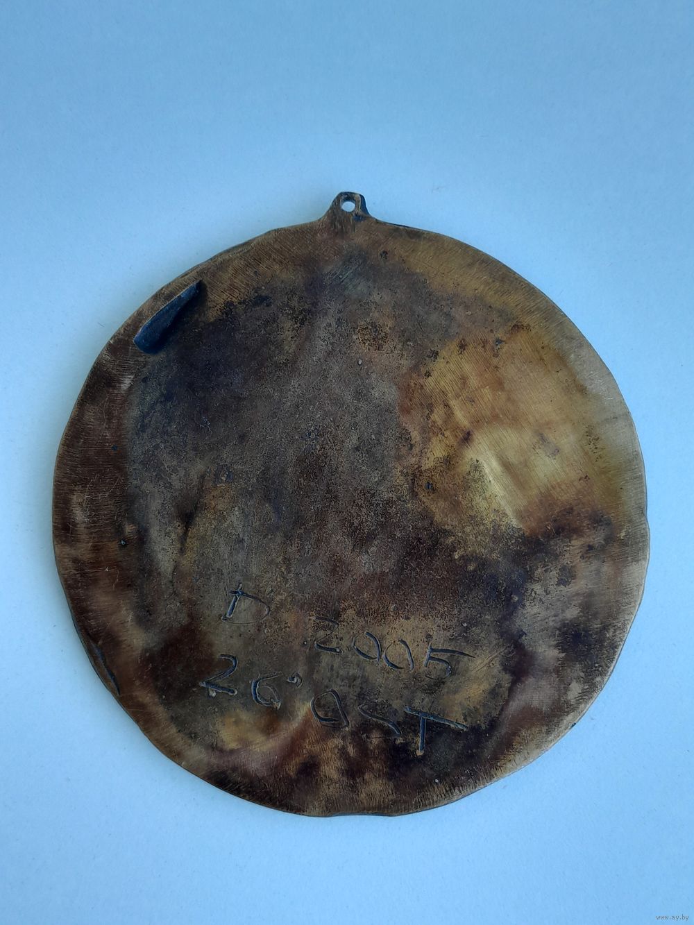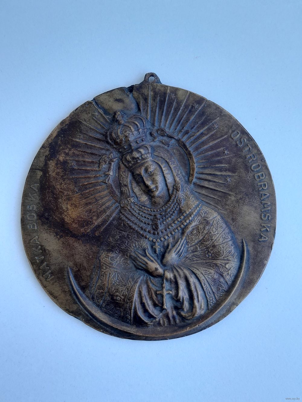 Медаль сувенирная "Остробрамская икона Божией Матери", бронза, ручная работа. Диаметр - 8 см, толщина - 3-5 мм, вес 134 грамма.