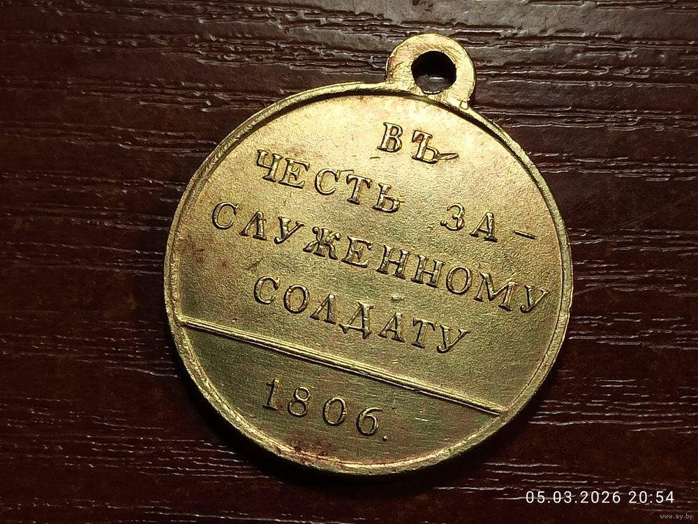 Медаль в честь заслуженному солдату. 1806 КОПИЯ с рубля