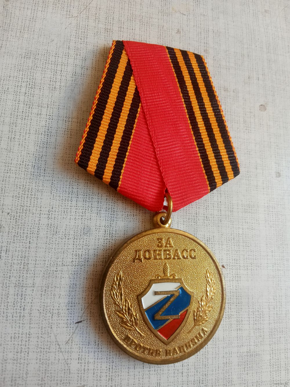 Медаль. За Донбасс. Против нацизма. (Щит триколор).