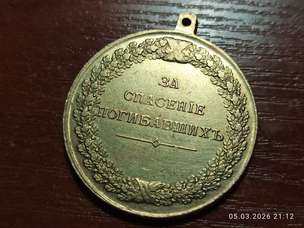 Медаль За спасение погибавших Александр ll КОПИЯ с рубля