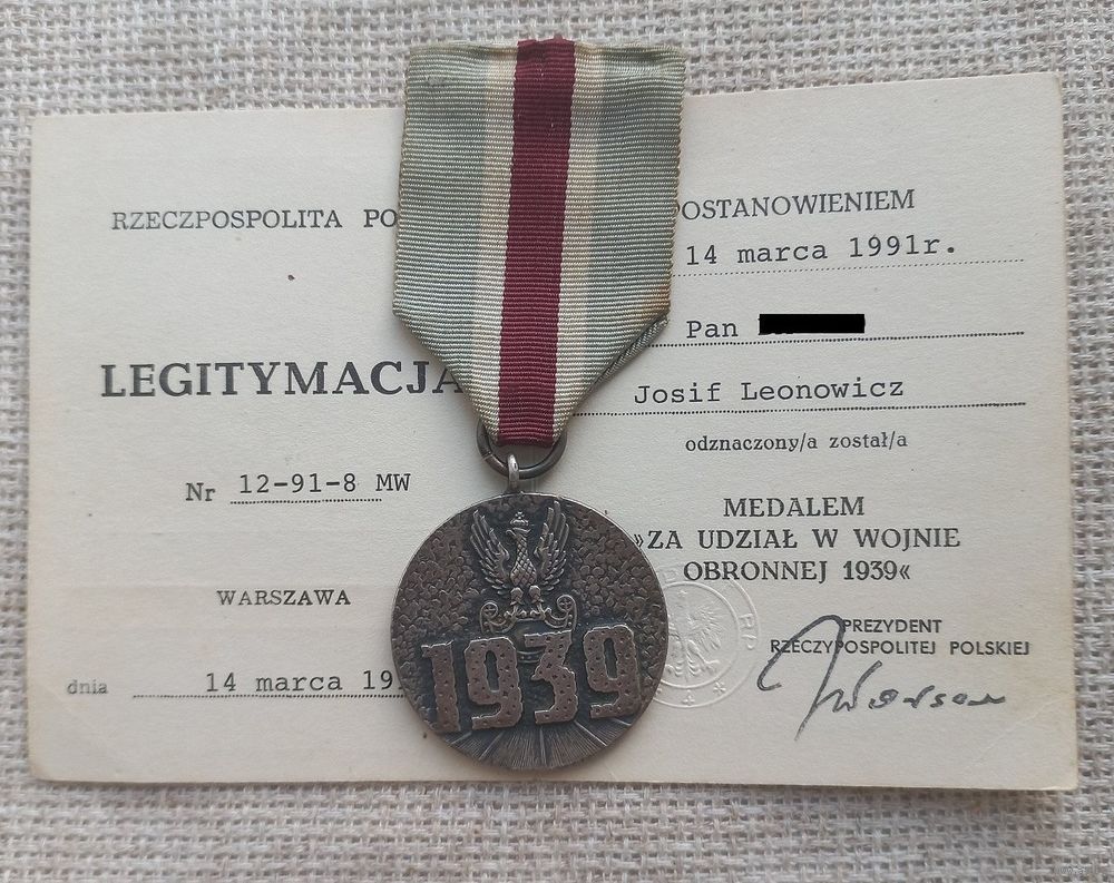 Медаль. За участие в оборонительной войне 1939 года. Польша.