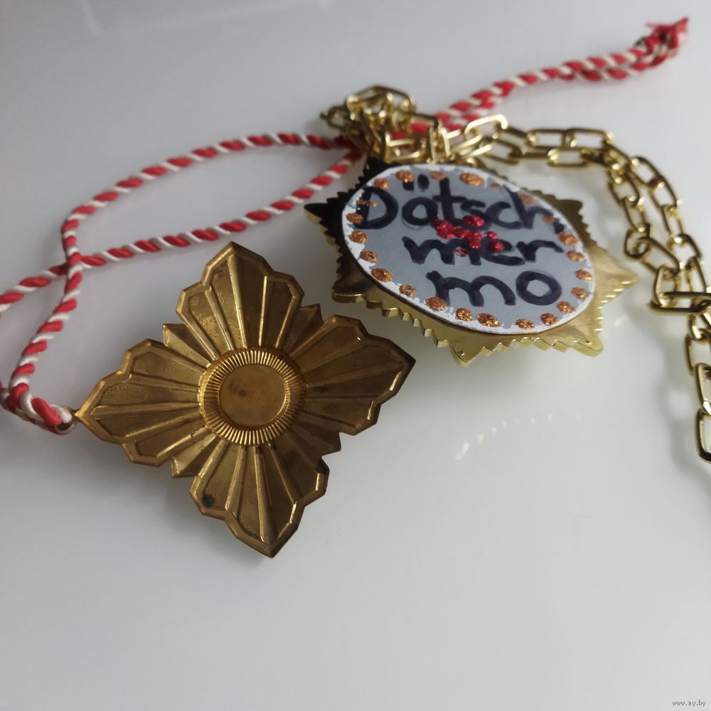 Цена за две. Возможно,использовались в каких- либо немецких мероприятиях. Жёлтый металл. Крупные. Но не литьё.цена за две.