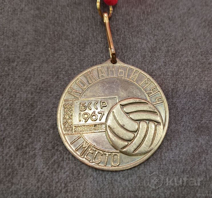 Медали *Кожаный мяч*. 1-2-3 место. БССР---1967 год. Диаметр 40 мм. Ленты с карабином новые. Район Ангарская.