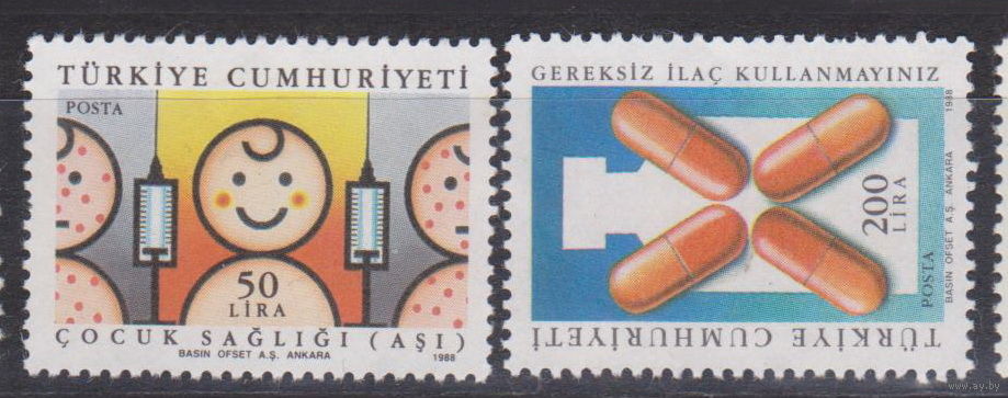 Медецина Здоровье Турция 1988 год лот 13 ЧИСТАЯ Менее 30 % от каталога по курсу 3 р