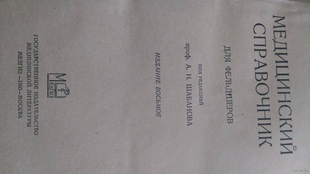 Медицинский справочник для фельдшнров под редакцией проф.АНШабанова государственной издательство медицинской литературы 1960 г