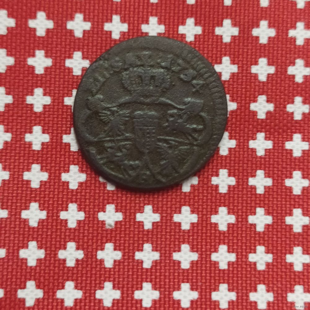 Медная монета, 1 грош 1754г. Польша, правление АвгустаIII., находка (оригинал), в патине и добром сохране, в коллекцию!!! См.фото, спасибо...