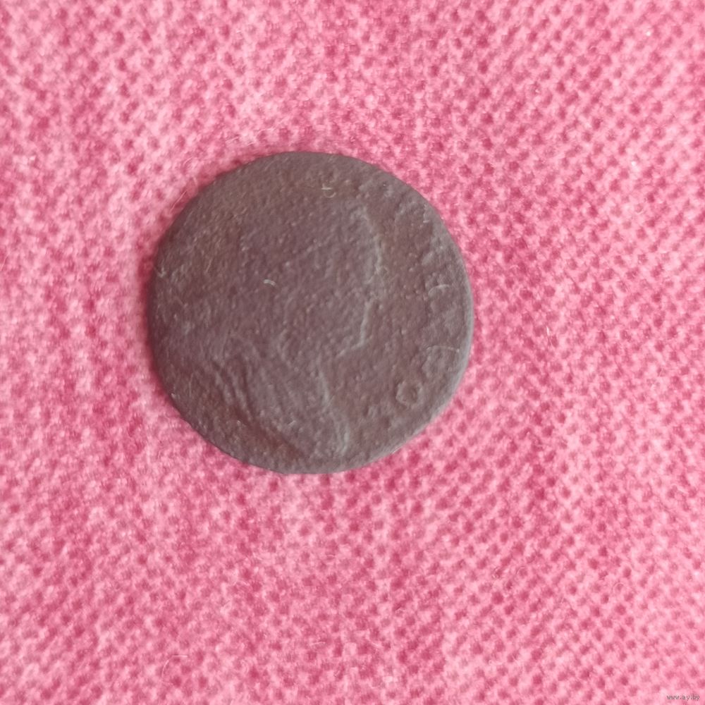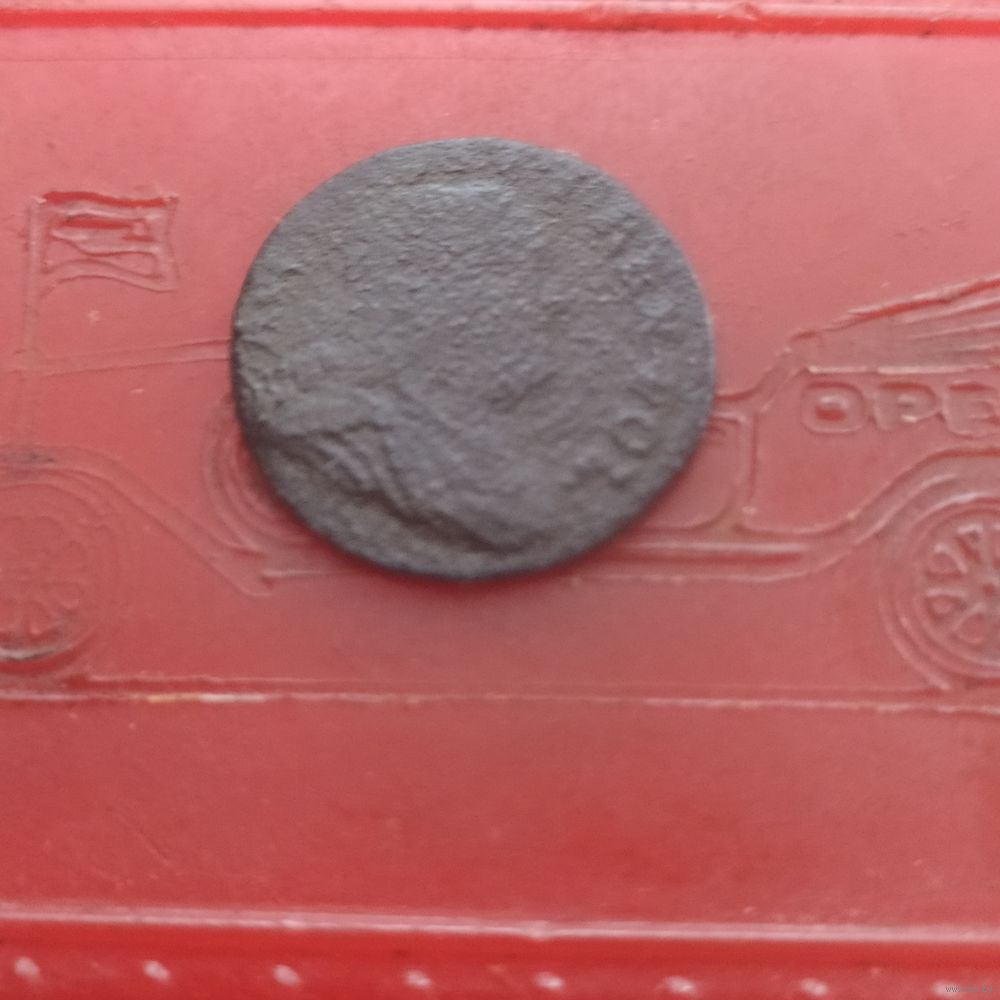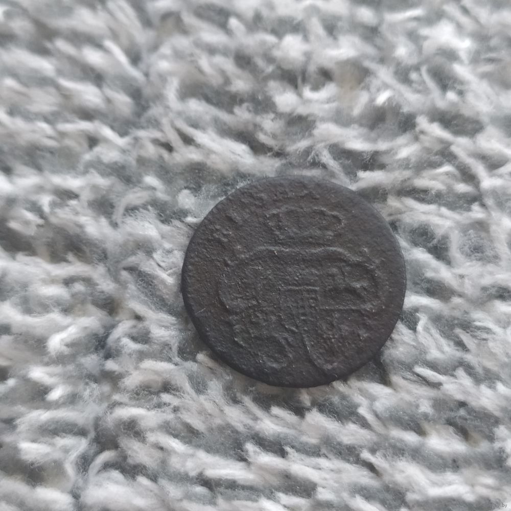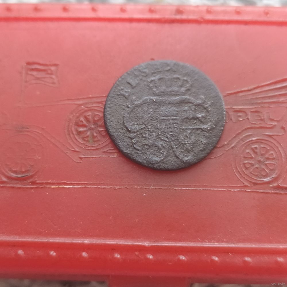 Медная монета: Коронный шеляг (солид) Августа III (1753–1755) является редким (по косвенным признакам) представителем медных солидов XVIII, находка, оригинал, не чищен..см.фото, спасибо.