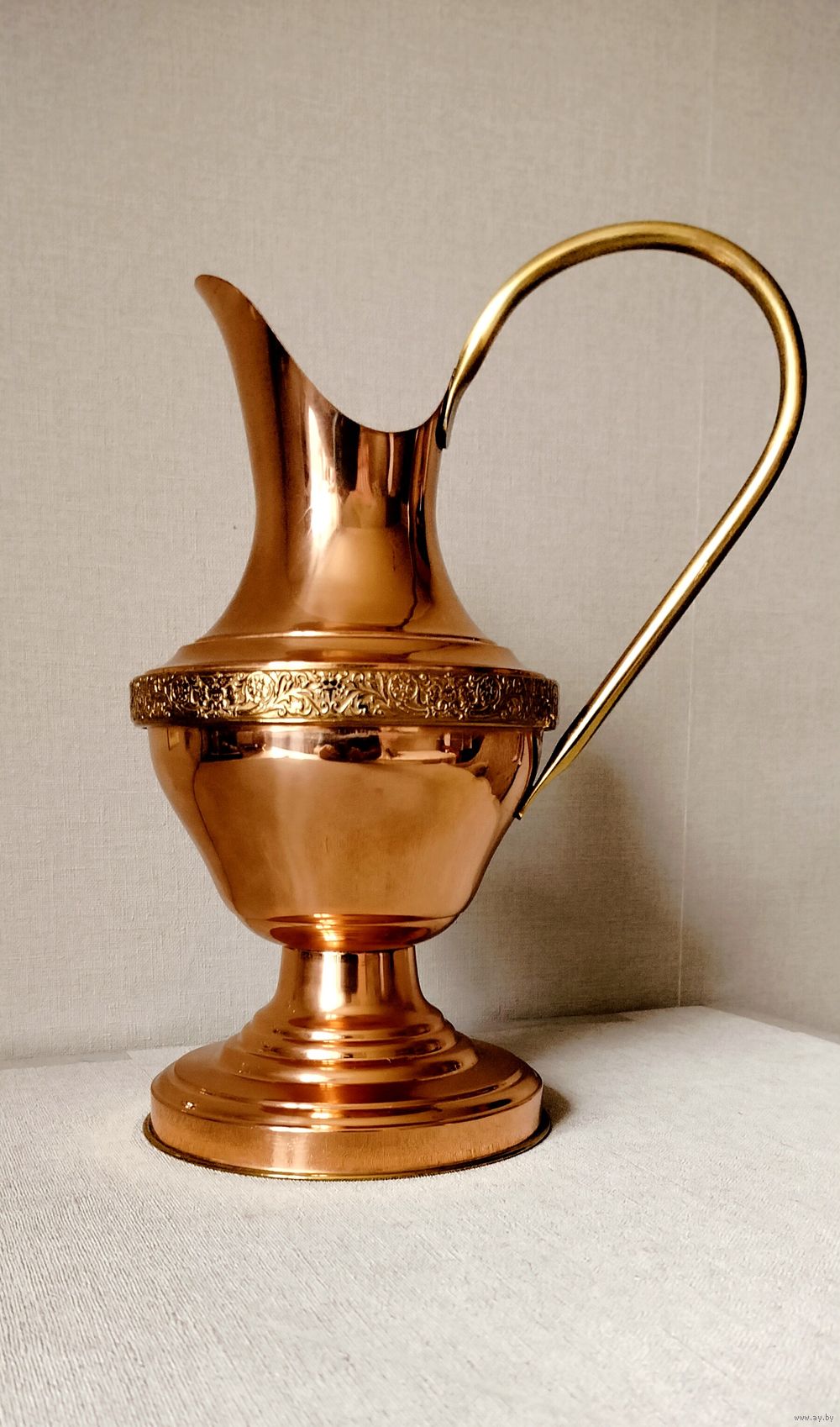 Новый медный кувшин на 1,5 литра Высота 30 см. Франция Клеймо. "Marque deposee" означает "зарегистрированная торговая марка GAOR". Клеймо 'Marque Deposse Willedieu " -- произведено в городе Вилледье-ле-Пуэль, который известен своими традициями производства медной посуды.