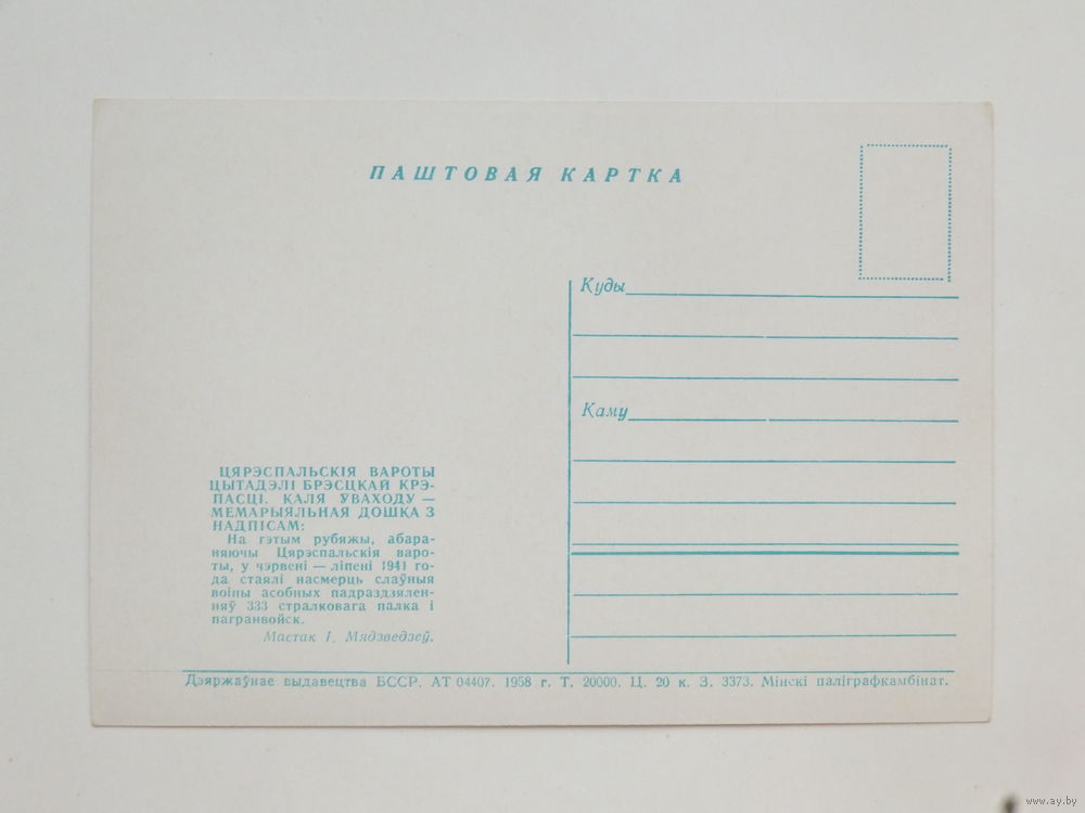 Медведев Бестская крепость 1958 10х15 см открытка БССР