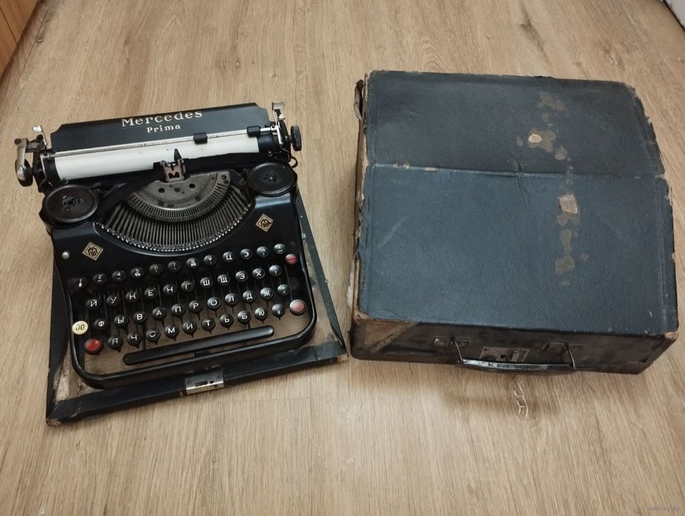 Механическая печатная машинка "Mercedes Prima" Германия Zella-Menlis" 1930 год с двумя запасными катушками в хорошем состоянии
