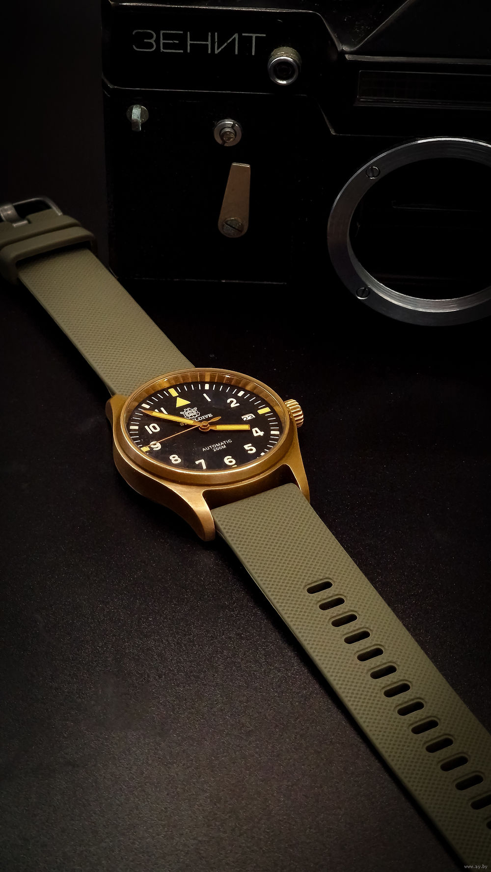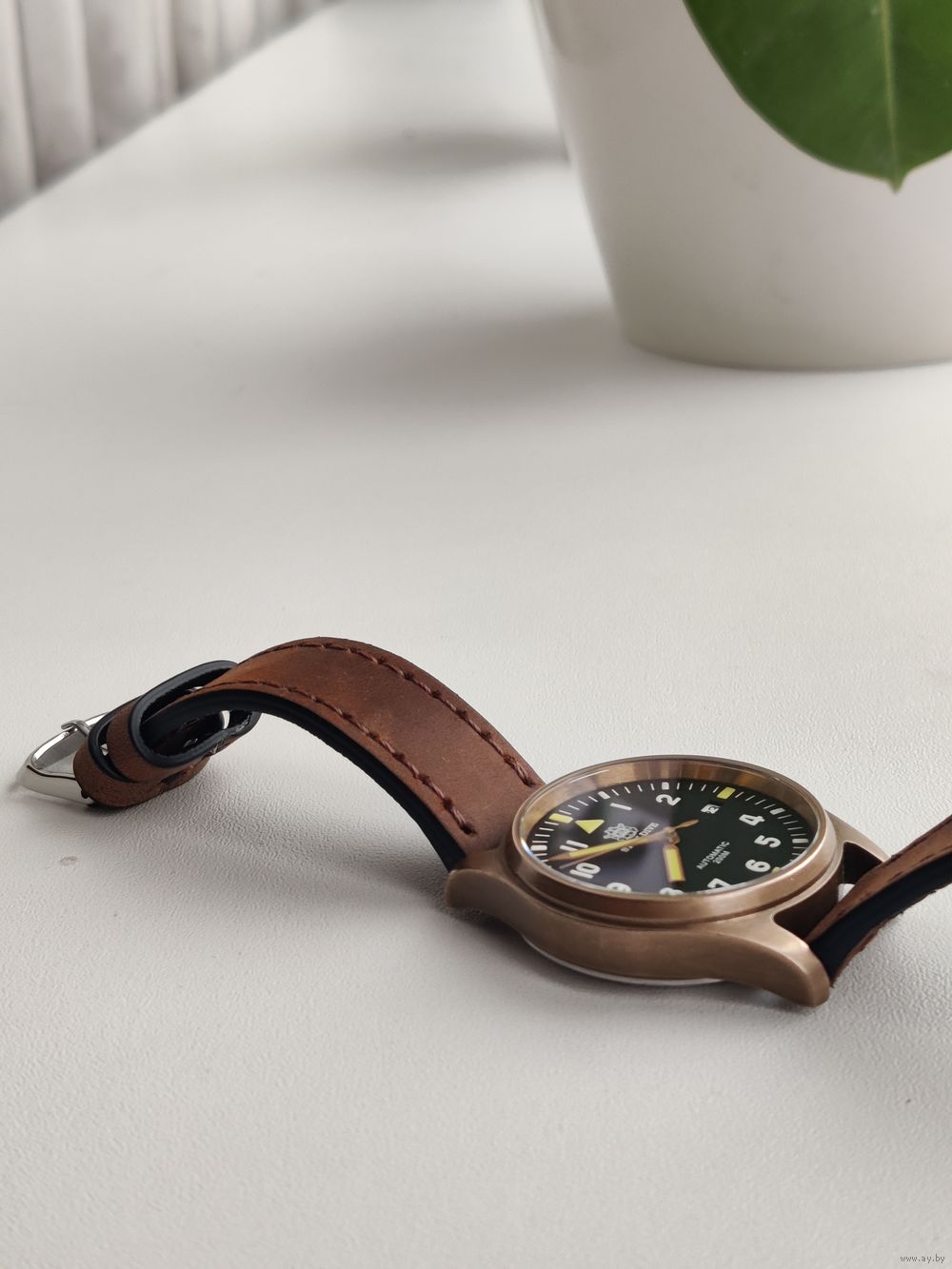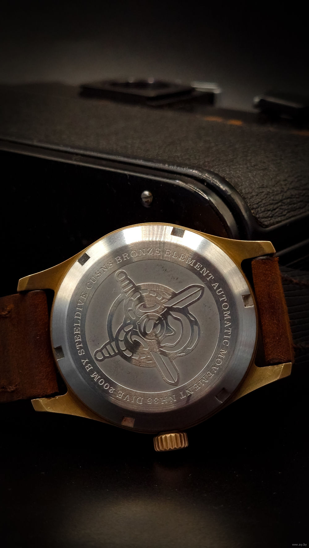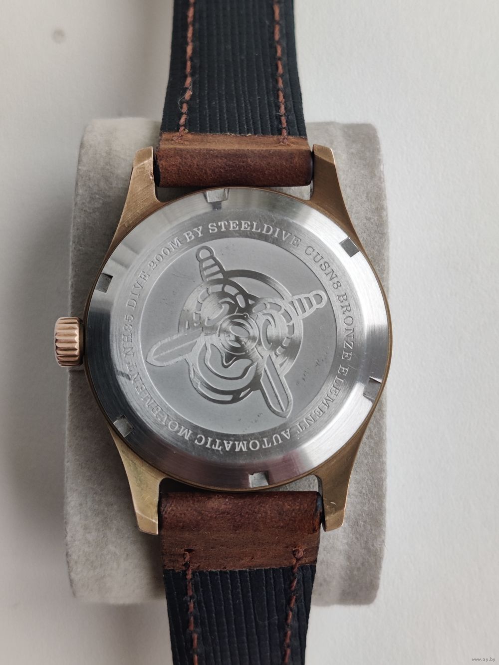 Бронзовые механические часы с автоподзаводом "STEELDIVE" дайверские 200м. С новым шикарным из натуральной кожы ремнём. Сапфировое стекло.