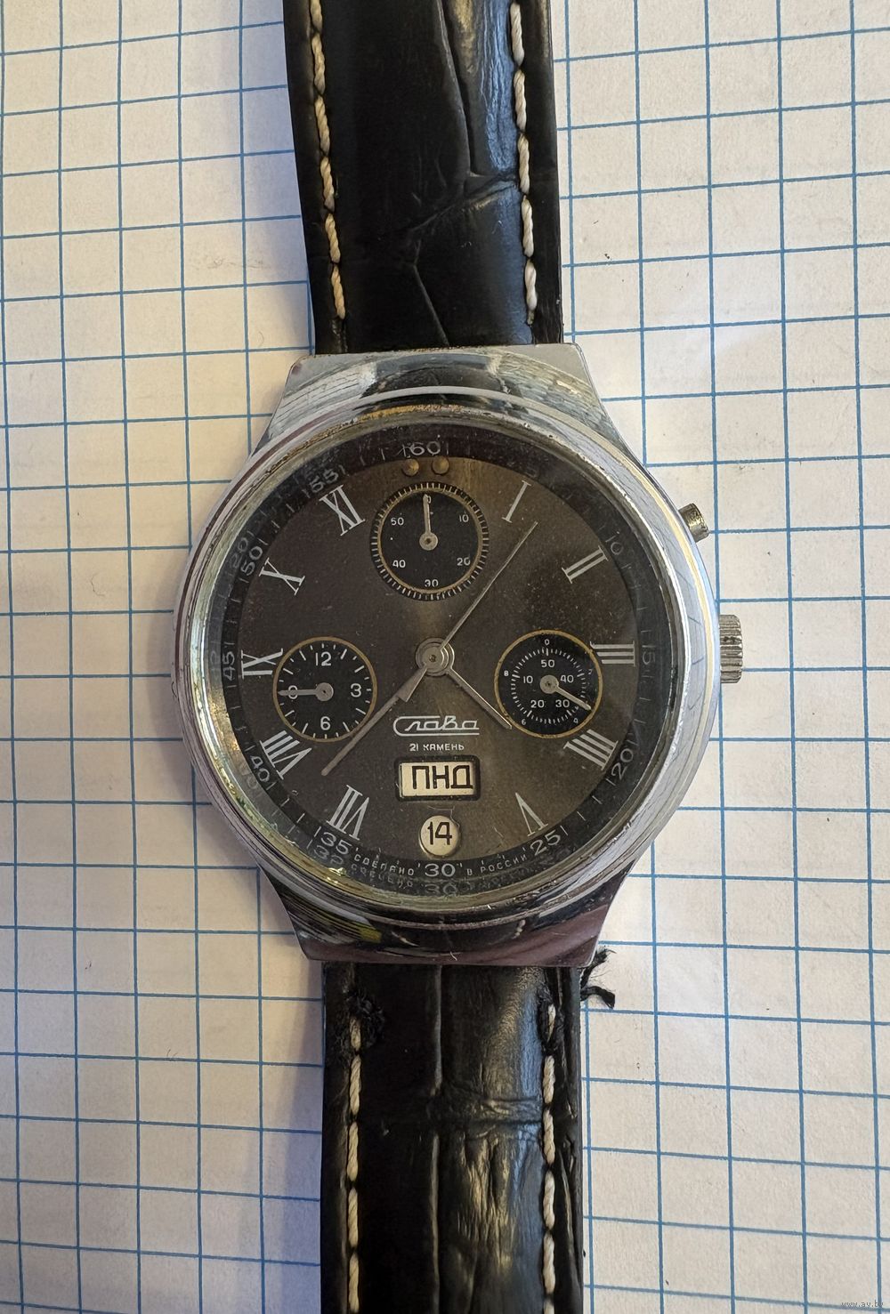 Мужские механические часы Слава с псевдохронографом (дополнительные циферблаты декоративные). Редкие .