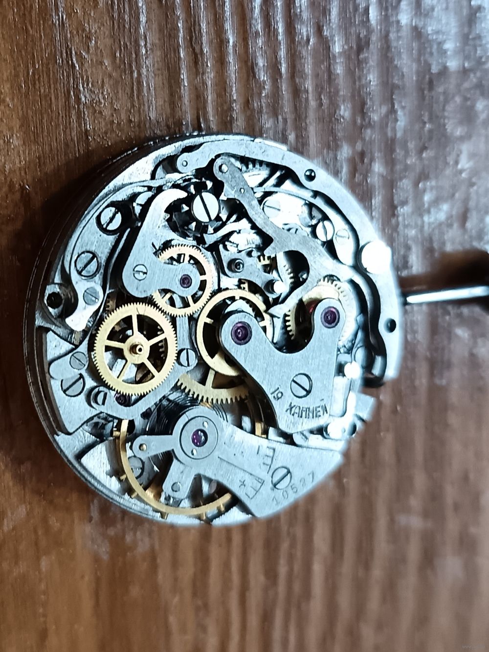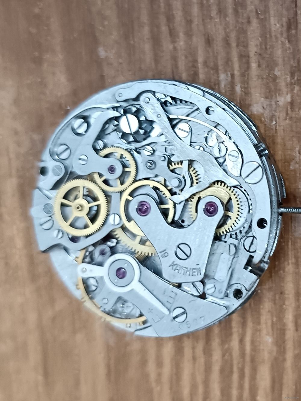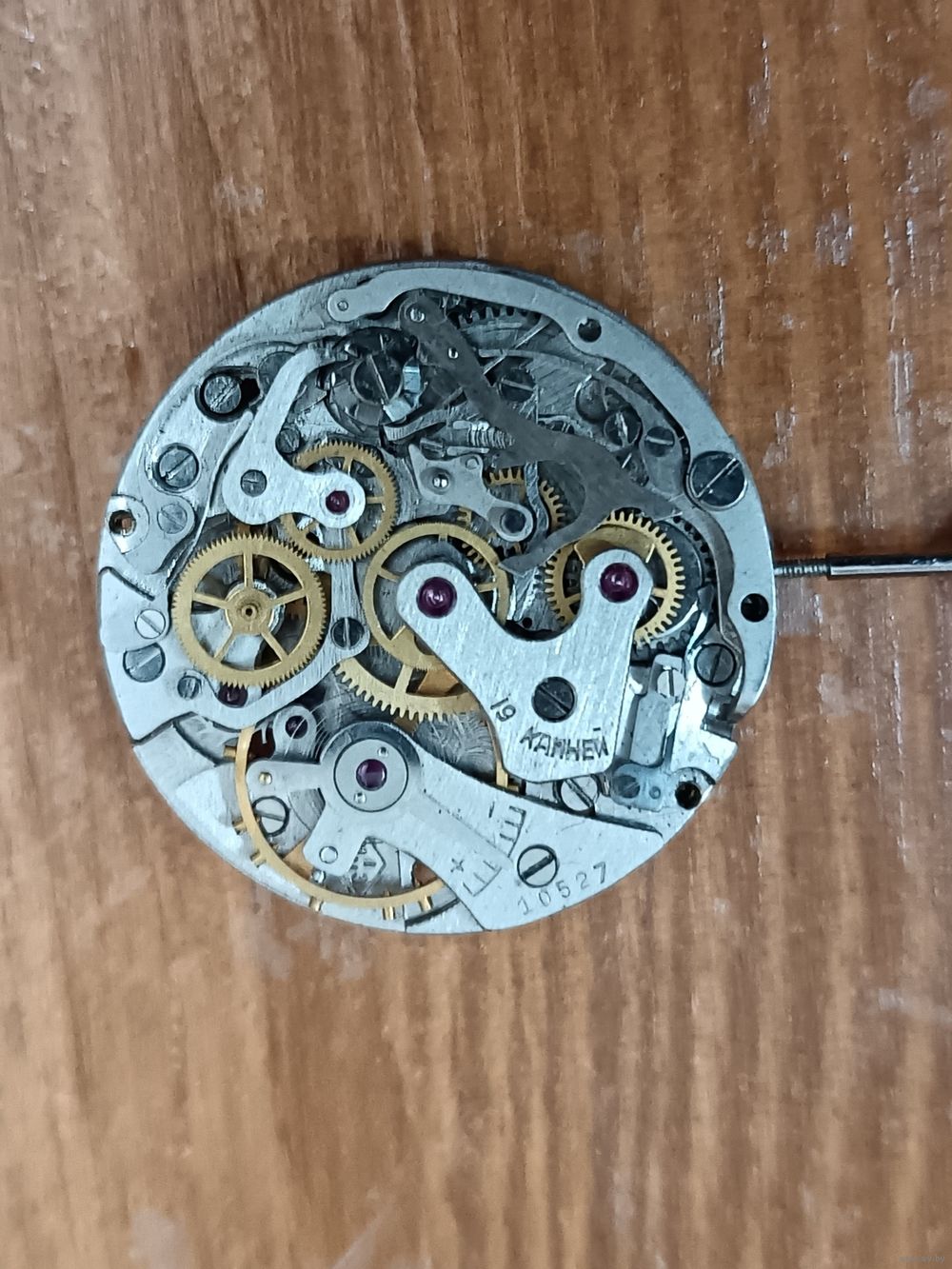 Баланс цел. Оси хронографа под стрелки целые. Нет минутного триба. В целом все целое смотрите фото. Заводной вал подойдёт на наручные. Фото есть