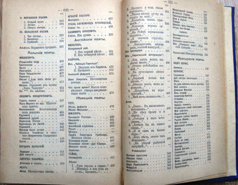Т. 1–2. Спб., А. Ф. Маркс., Мей Л. Полное собрание сочинений... С критико-биогр. очерком, библиограф. указателем... В 2-х т. Изд. 4-е, вновь просмотр. и доп., под ред. П. В. Быкова. Т. 1–2. Спб., А. Ф. Маркс., 1911. (Прилож. к журн. "Нива" за 1911 г. Вышло в 8-ми кн.). 20Х14 см. Комплект из двух антикварных томов в твердых переплетах второй половины XX века. Чистые. Т. 1. Стихотворения. 622 с., 1 л. портр. Т. 2. Драматические произведения и рассказы. 560 с. Лев Александрович Мей (1822-1862 гг.) - русский поэт. Учился в Московском дворянском институте (1831-1836 гг.), потом за успехи был переведен в Царскосельский лицей (1836-1841 гг.). Служил в канцелярии московского генерал-губернатора. Сотрудничая с 1841 года в "Москвитянине", Мей сблизился с Погодиным М.П. и тесно сошелся с кружком молодой редакции "Москвитянина" (Григорьев, Островский и другие). В 1853 году Лев Мей переселился в Петербург, отдавшись исключительно литературной работе: переводил Шиллера, Генриха Гейне, Пьера Жана Беранже, Джорджа Гордона Байрона, Адама Мицкевича, Анакреона, Тараса Шевченко. Осуществил перевод "Слова о полку Игореве" с древнерусского языка на литературный язык XIX века с некоторыми отступлениями от подлинника. В переводе использовал стиль близкий былинному. На сюжеты драм в стихах "Царская невеста" (1849 г.), "Псковитянка" (1849-1859 гг.) и "Сервилия"написаны оперы Римского-Корсакова. Сборники произведений Мея Л.А. были представлены в библиотеке Петра Ильича Чайковского.