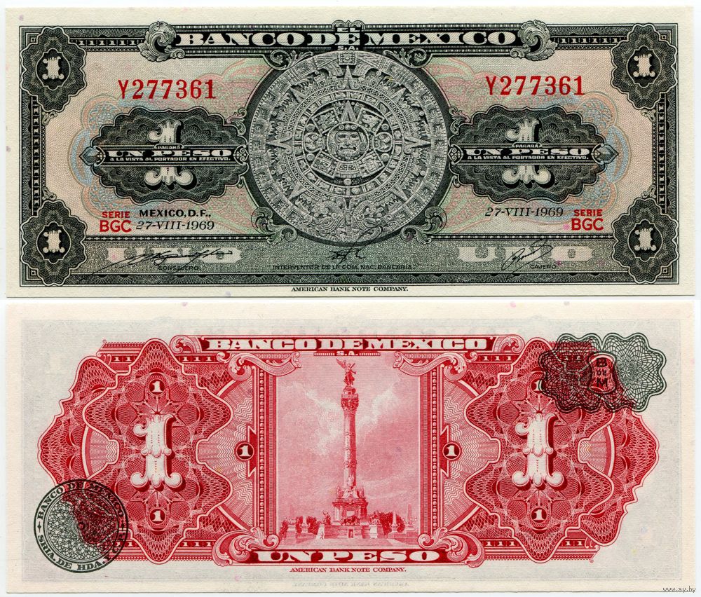 Мексика. 1 песо (образца 1969 года, P59k, подпись 1, UNC)