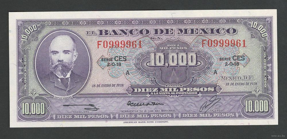 Мексика 10000 песо 1978 года. Тип P-72. Состояние UNC